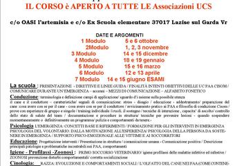 La SCUOLA NAZIONALE CINOFILA CISOM corpo italiano di soccorso ORDINE DI MALTA organizza un corso della durata di 9 mesi a Lazise sul Garda per i BINOMI cane e conduttore da applicare nel SUPPORTO EMOZIONALE ai soccorritori e ai PAA in (post) emergenza.